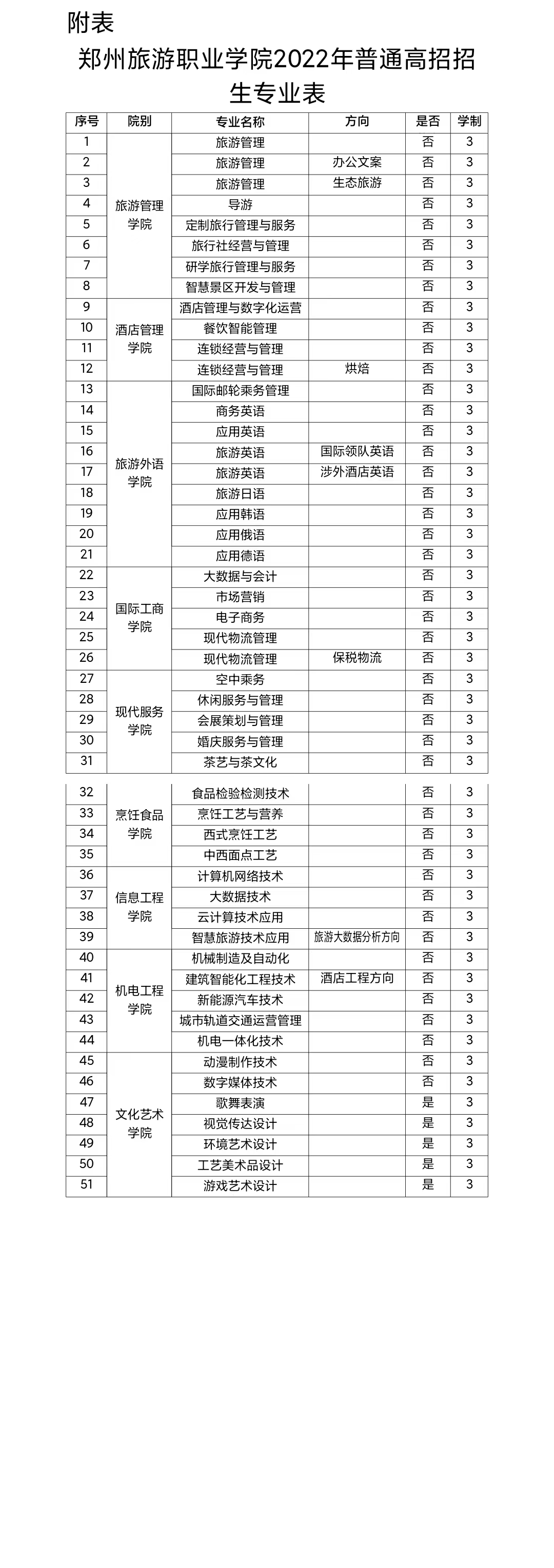 附表:pp电子游戏平台网站2022年普通高招招生专业表