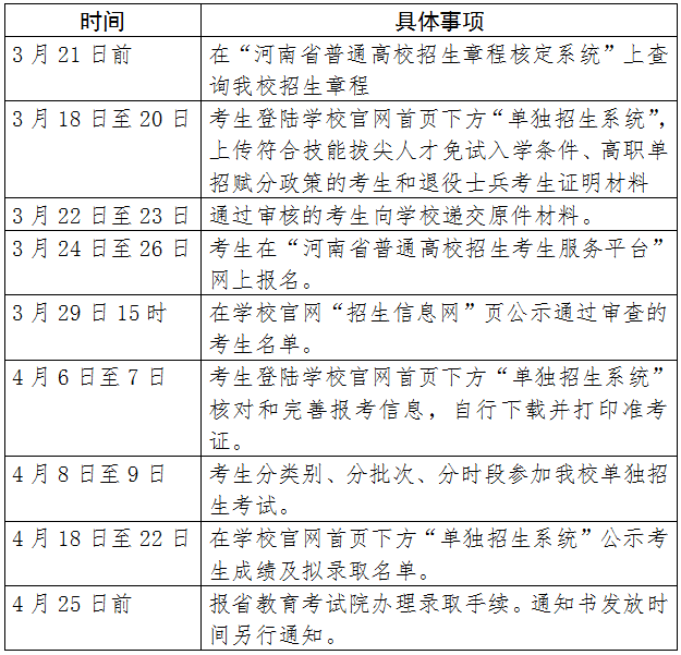 第二十七条 高职单招主要工作时间安排见下表: