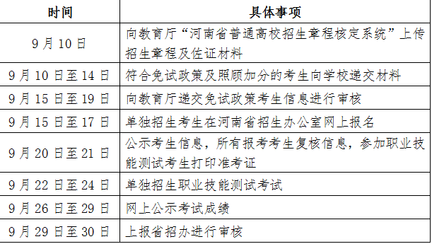 第九章 单独招生工作时间安排