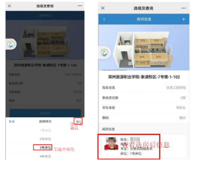 后期新生可通过网上选房首页的【已选房间】功能,查看该房间各床位的入住情况。
