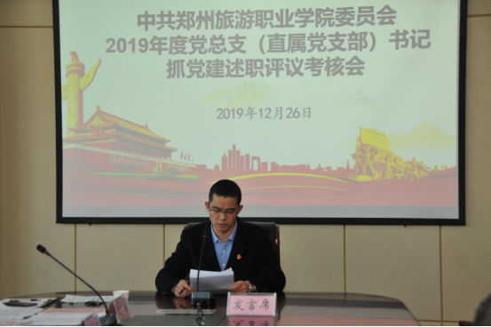12月26日下午,学校召开2019年度党总支(直属党支部)书记抓党建述职评议考核会,对过去一年全校党建工作进行回顾检视,主要围绕深入开展“不忘初心、牢记使命”主题教育情况、切实加强以新时代党的建设为根本的基层基础工作情况、扎实开展软弱散漫基层党组织集中整顿情况、发挥基层党组织战斗堡垒作用、推动重大任务情况、履行基层党建工作责任情况进行述职。