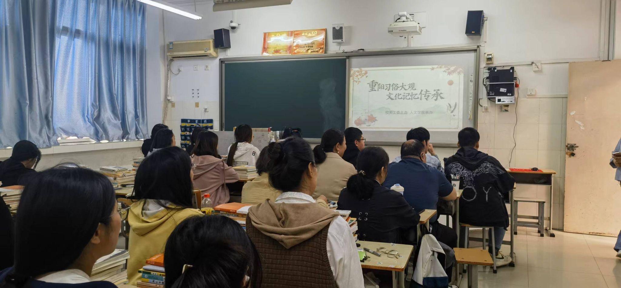 讲座中,人文学院侯春慧老师引经据典,从不同角度向同学们介绍“重阳节”的具体来源、各种“别名”以及重阳佳节的习俗。重阳传统文化深深吸引了同学们的关注和思考。