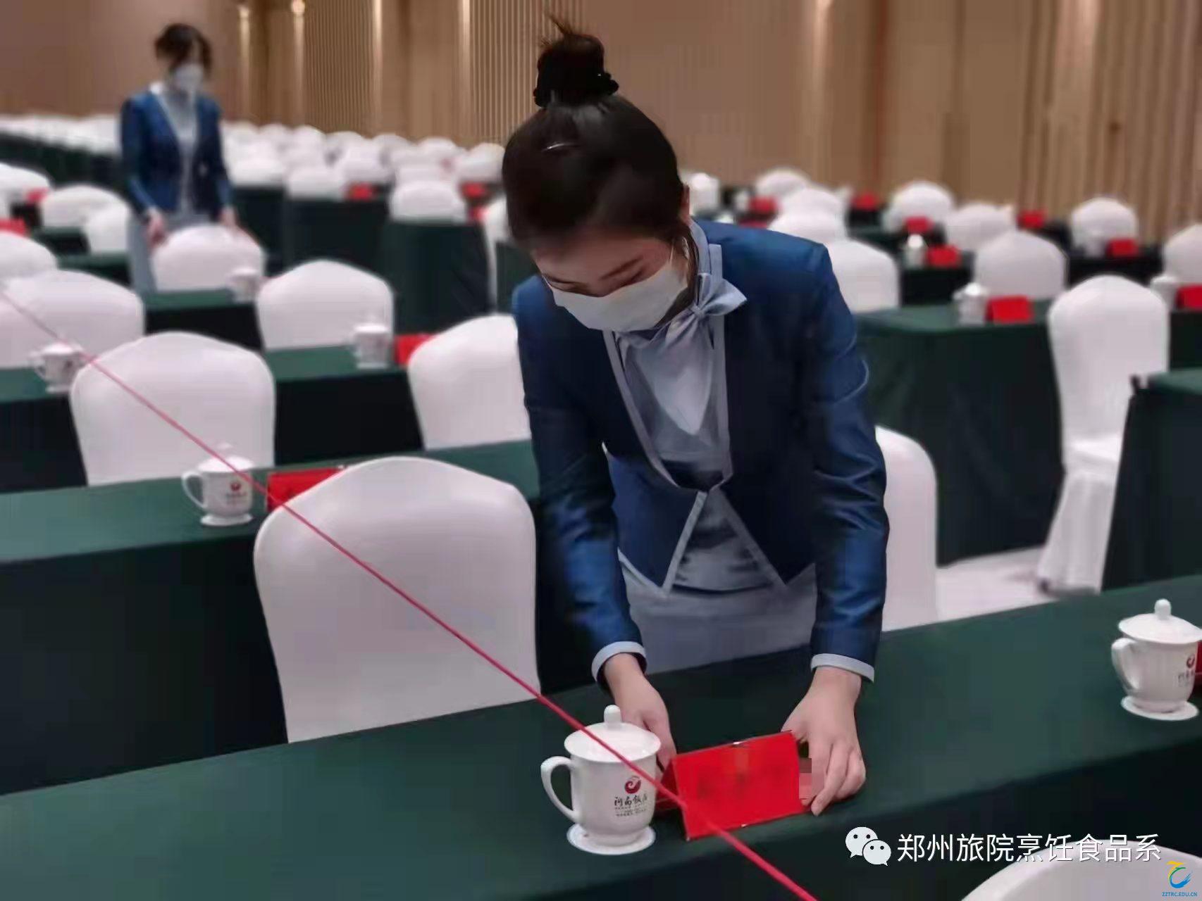 在河南饭店,pp电子23名学生负责餐饮接待、明档服务等工作。服务中,他们朝气蓬勃、热情洋溢,成为会议接待中一道靓丽的风景;他们听从安排、服从指挥,充分体现了高度的执行力;他们过硬的综合素质、勤奋敬业的精神,展现出精湛的专业技能,得到了代表们的一致好评。