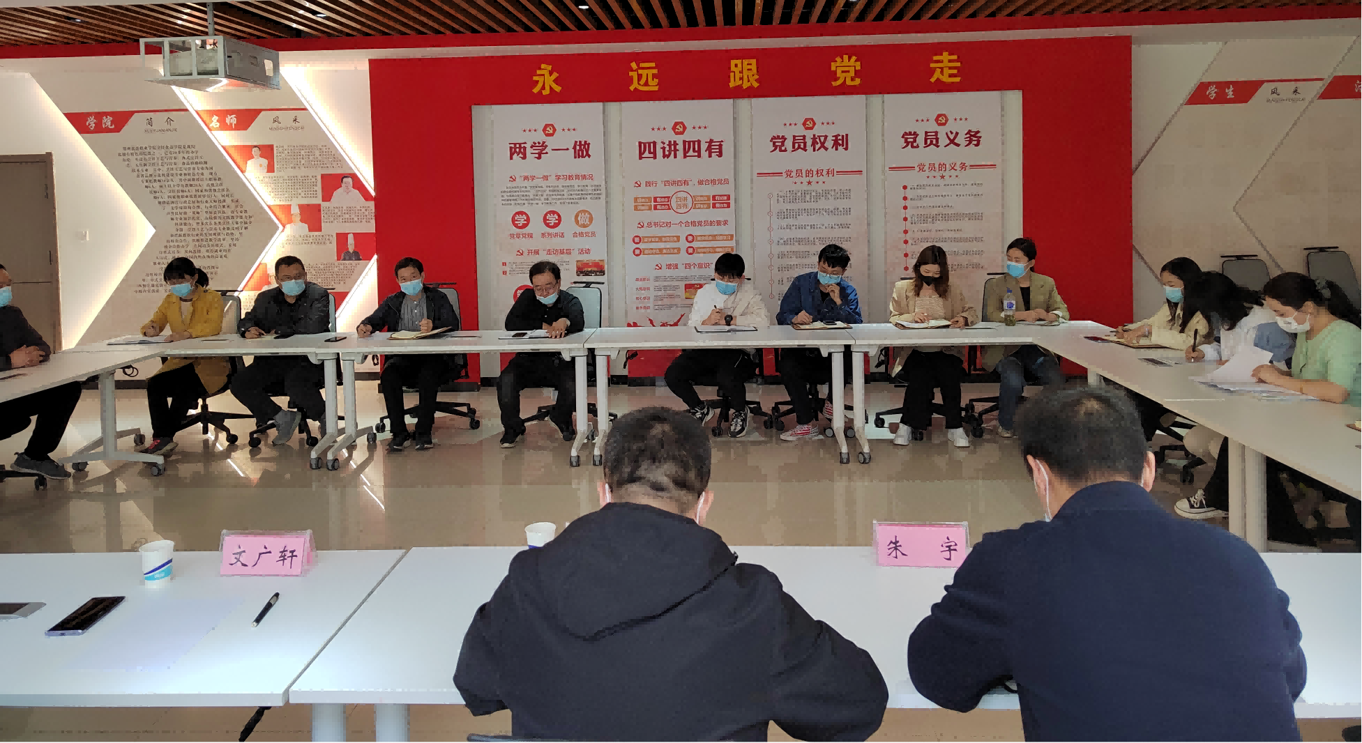 座谈会上,文广轩认真听取教职工发言