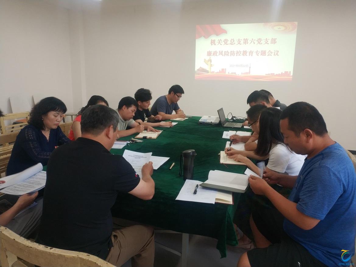 按照校机关党总支、校纪检委工作要求,为持续深化标本兼治,强化对权力运行的监督和制约,推进廉政风险防控工作取得实效,2021年6月22日下午,机关党总支第六党支部在后勤服务中心楼二楼会议室召开廉政风险防控教育专题会议,会议由支部书记王军红同志主持,第六党支部全体党员参加会议。