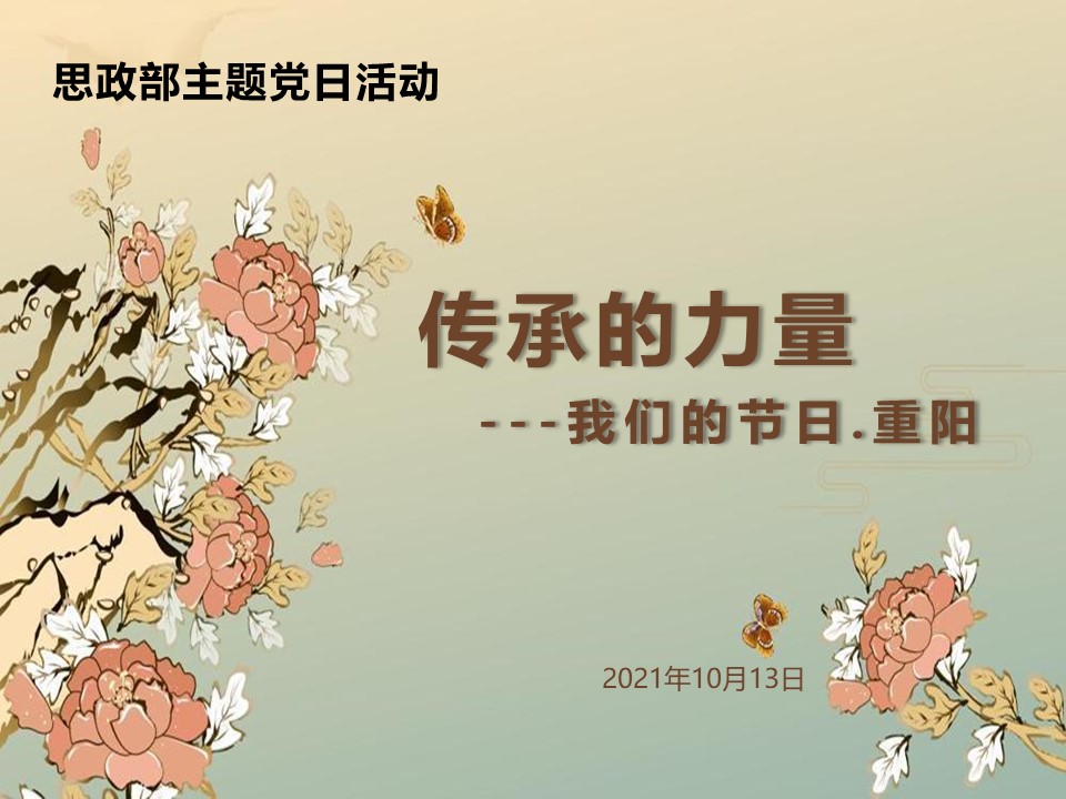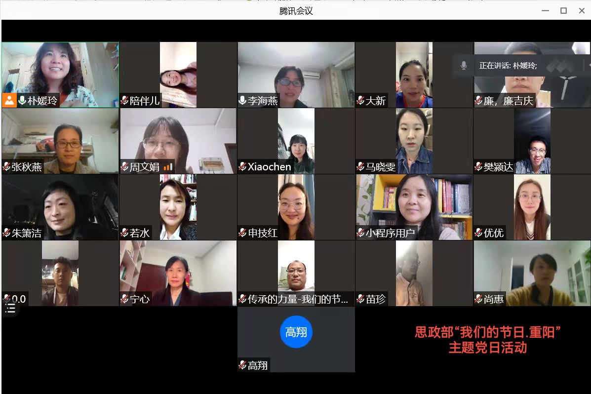 岁岁重阳,今又重阳。10月13日,农历九月初九,有着2000多年历史的传统佳节重阳节如约而至,尊老敬老的传统美德再一次延续传承。思政部全体教师在线上举行了一场别开声面的活动:传承的力量---我们的节日.重阳。活动由朴媛玲老师主持。
