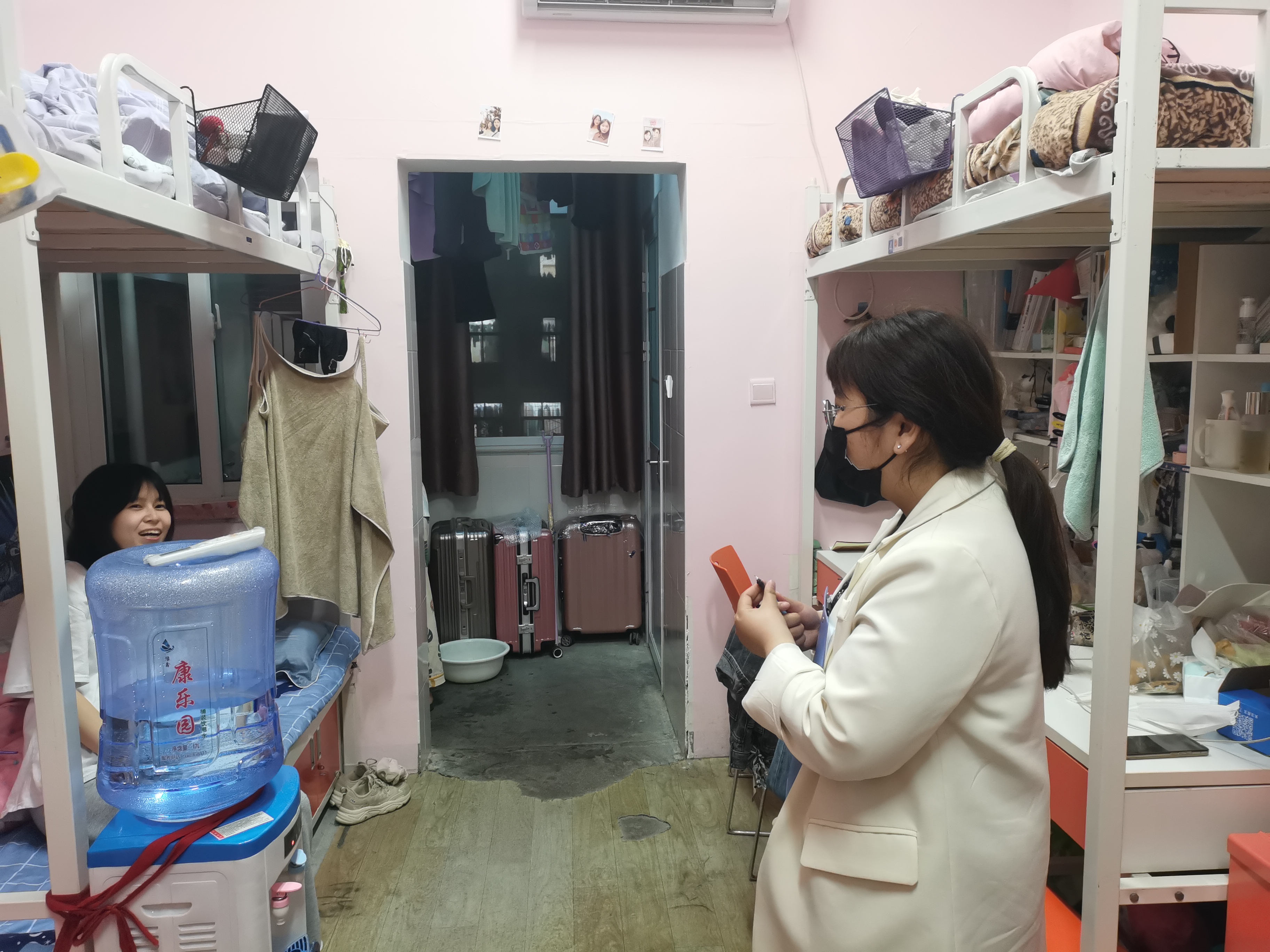 之后,张鹏、李冰带领全体学团干部走进学生宿舍,与学生暖心聊天,关心学生近况与心理状态,并征求大家关于开展活动的相关建议。