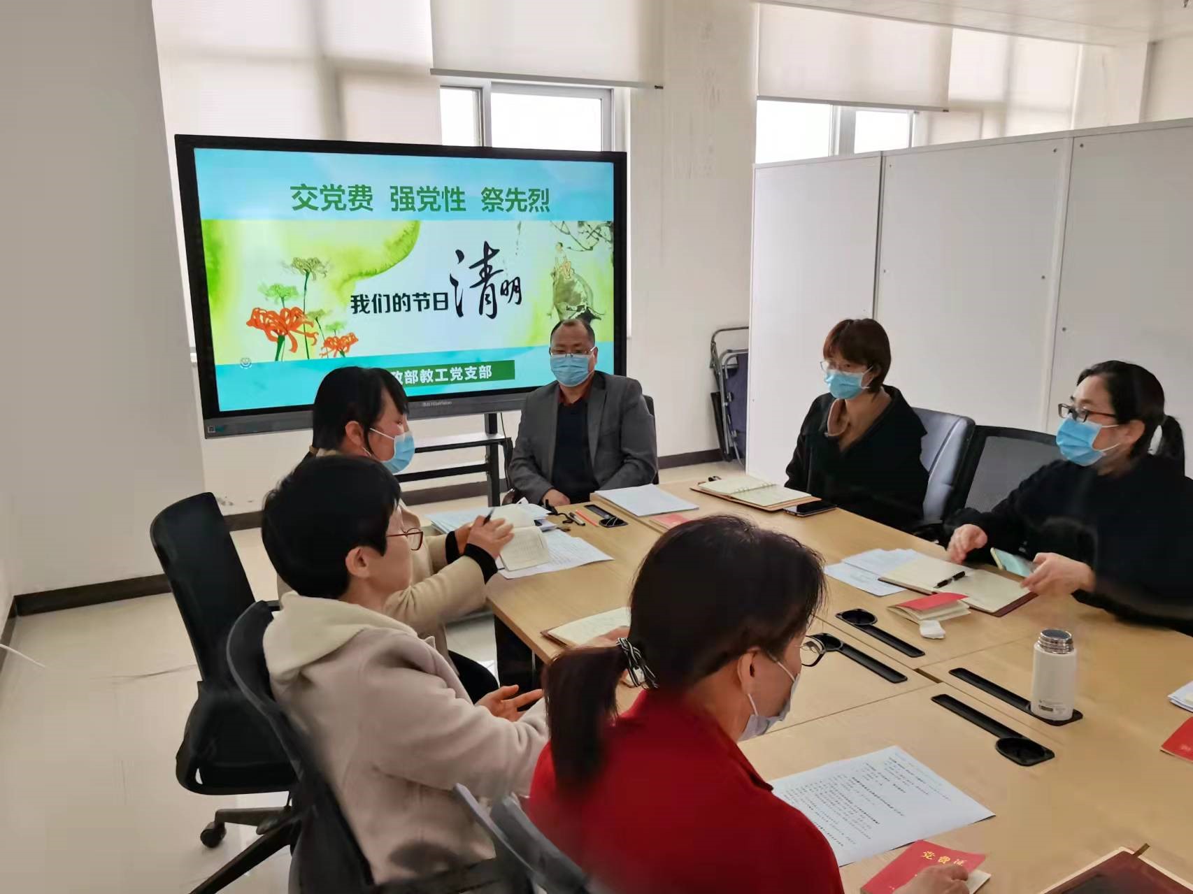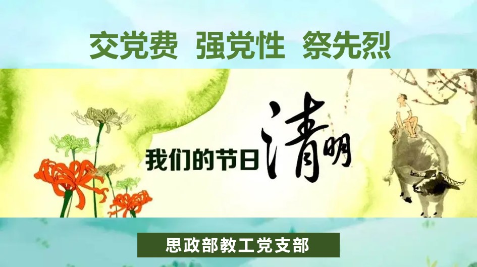 为扎实开展能力作风建设年活动,进一步提高党性修养增强党员意识,同时也为推动党史学习教育常态化长效化,缅怀革命先烈,传承红色精神,清明前夕,思政部教工党支部开展了“交党费 强党性 祭先烈 我们的节日.清明“主题党日活动。