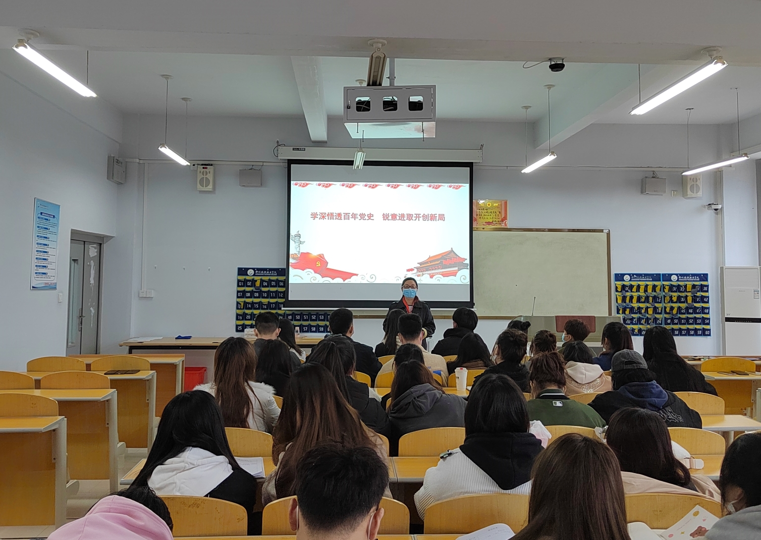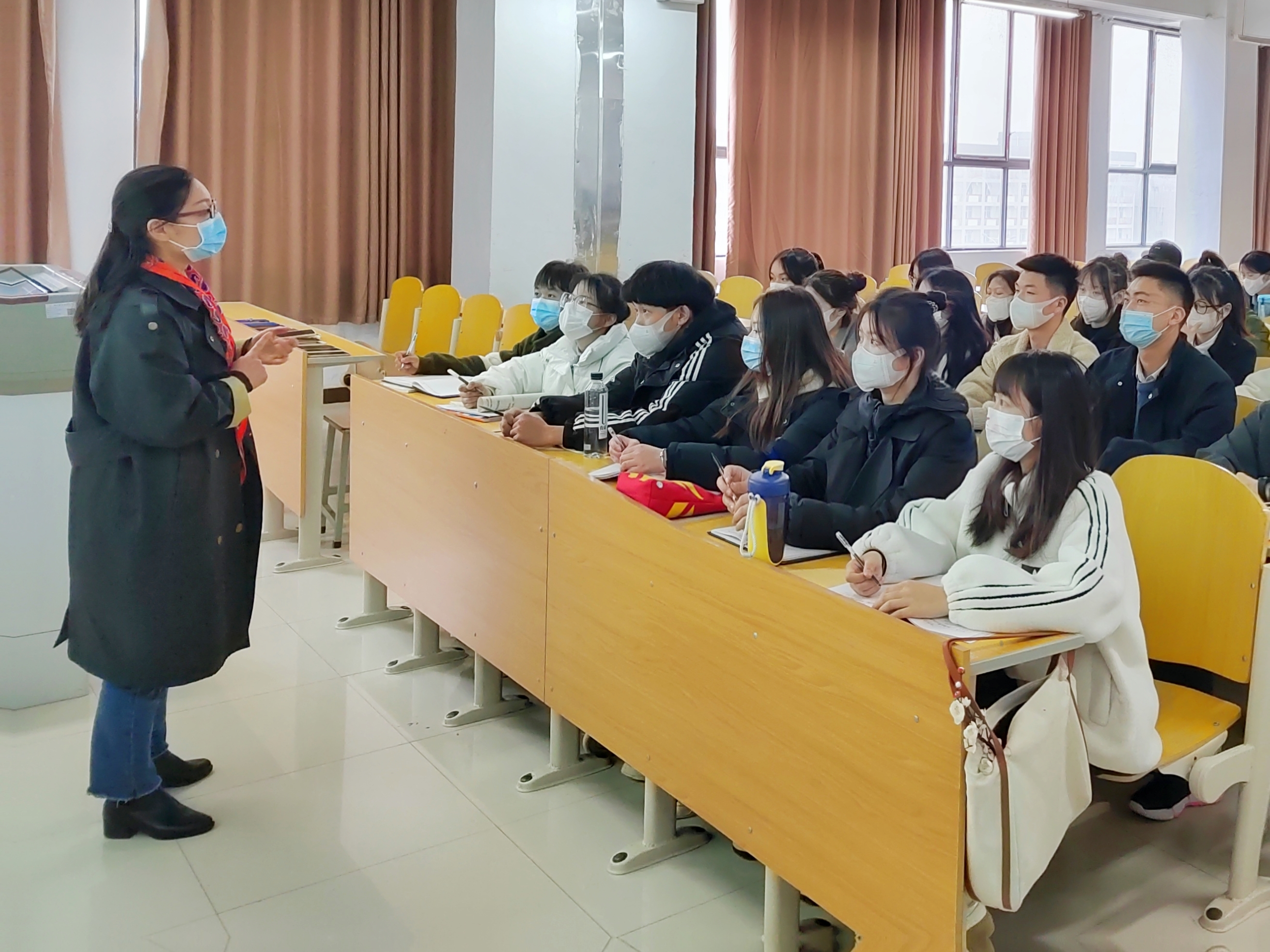 2022年3月17日,现代服务学院院长许向蒲在1A507教室为青马学员和入党积极分子上了一节精彩的思政课。