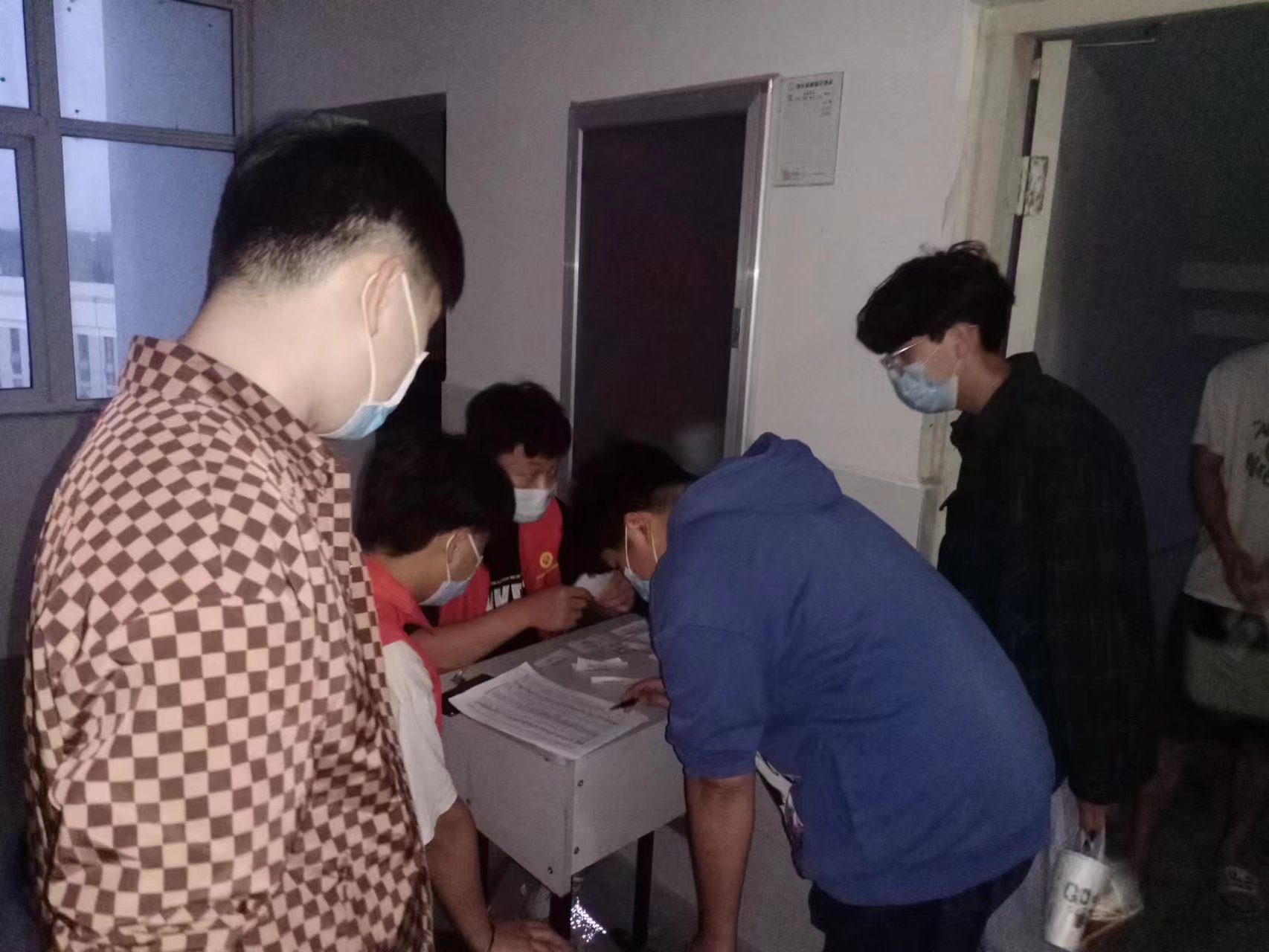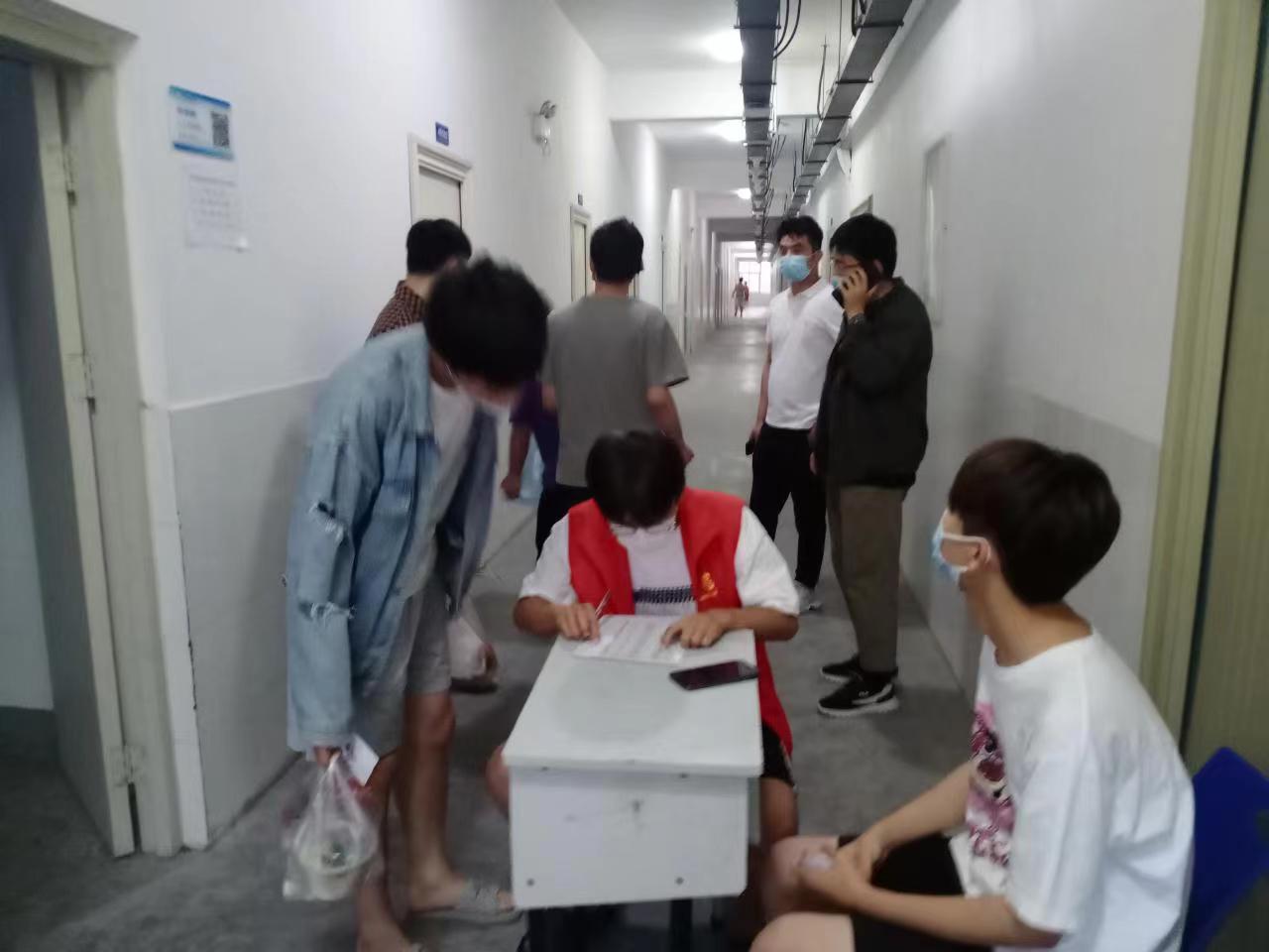 在宿舍看到辛勤的老师们,不辞劳苦,白天上课,晚上还亲自到宿舍看望同学们,同学们感到心里很踏实,脸上也露出笑容。老师们声声嘱托,同学们心领神会,乐观面对突发应急情况。师生身在一起,心往一处想,遵守疫情防控纪律,坚持必胜信念,争取早日取得这场疫情防控阻击战的胜利。