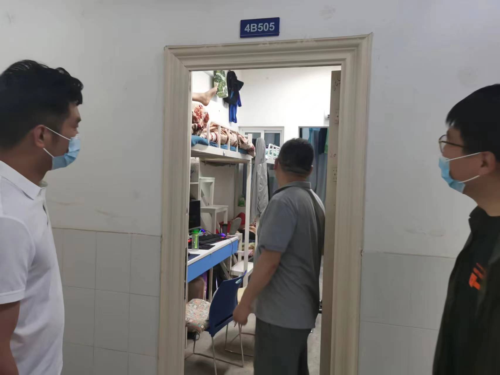 中餐教研室主任王风雷老师、娄世垚和花磊老师悉心慰问宿舍学生