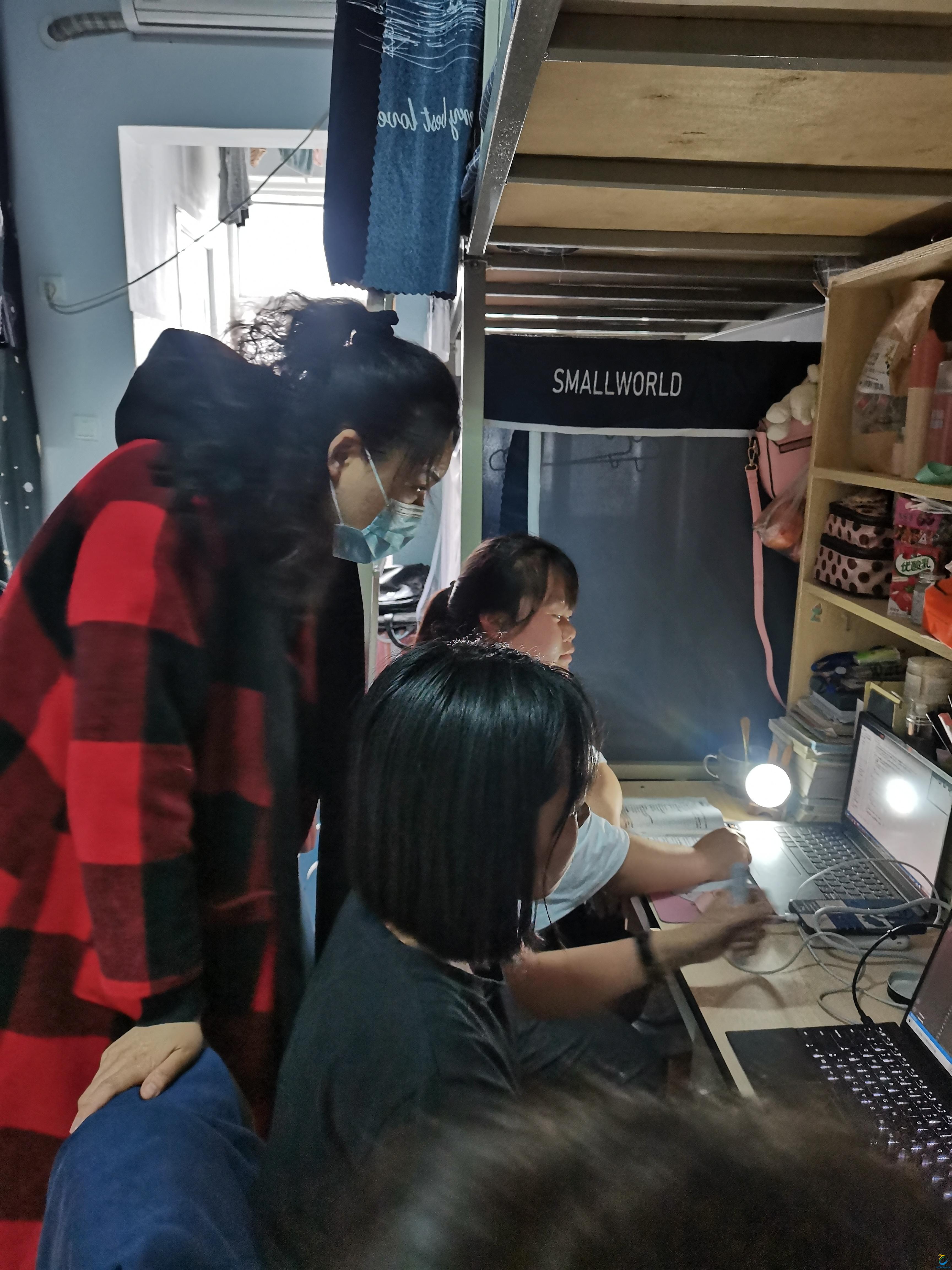 同时,潘宁第一时间进入宿舍,慰问学生,看看学生们的学习生活状态,她像一位大家长,用心关怀学生,与她们聊天谈心,指导学生网课。