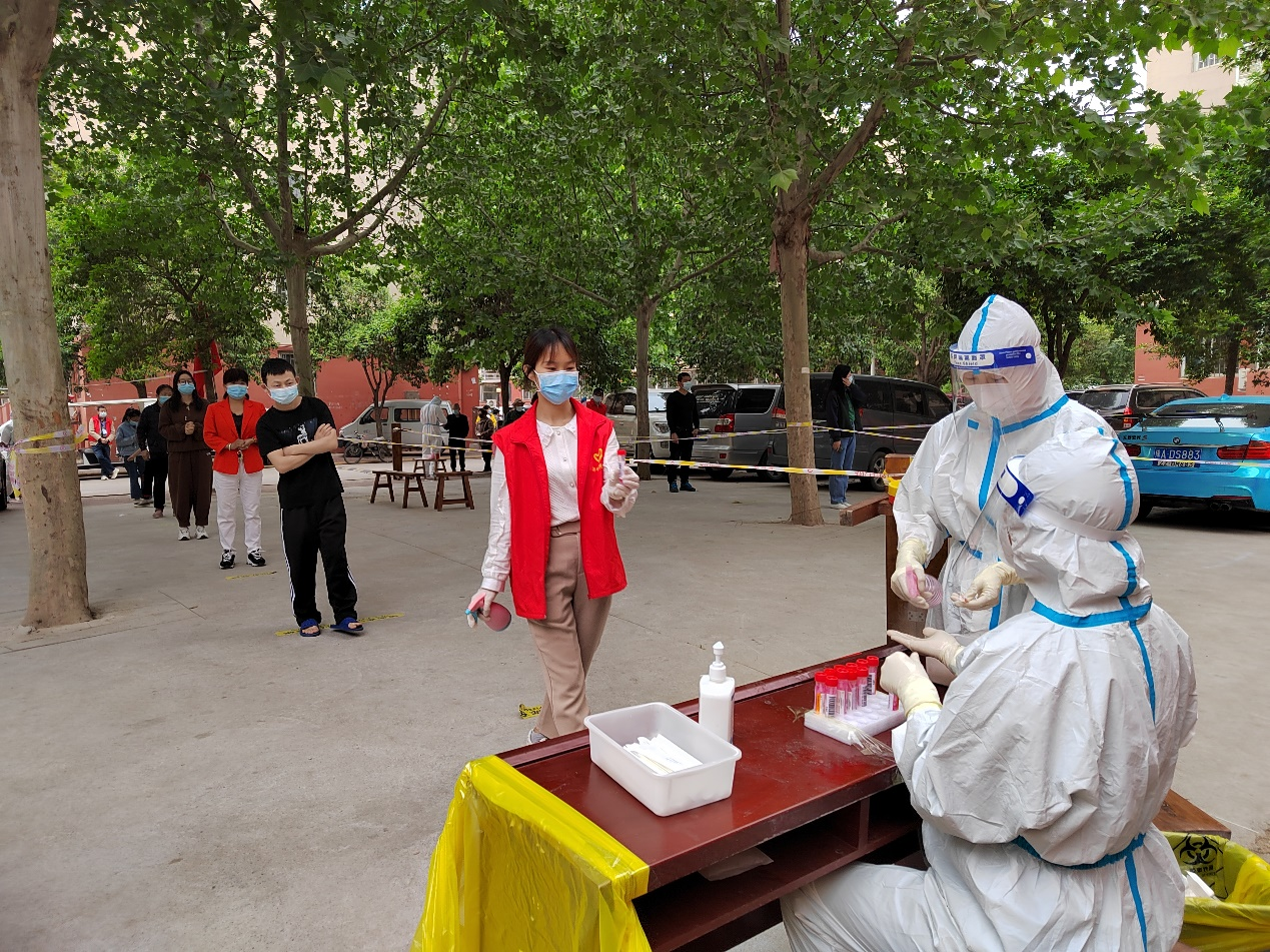 从5月3日晚开始,校园内值守的老师们夜以继日辛勤付出,作为一名党员,以实际行动响应学校组织部《关于在疫情防控平急转换中切实发挥基层党组织战斗堡垒和党员先锋模范作用的通知》的号召和殷切希望,烹饪食品学院张莉莉老师和孙文文老师主动向社区报到,加入社区志愿服务活动。核酸检测前,主要负责咽拭子分离、场地布置等工作;核酸检测进行时,负责扫码组织、消毒喷洒、秩序维持等工作。